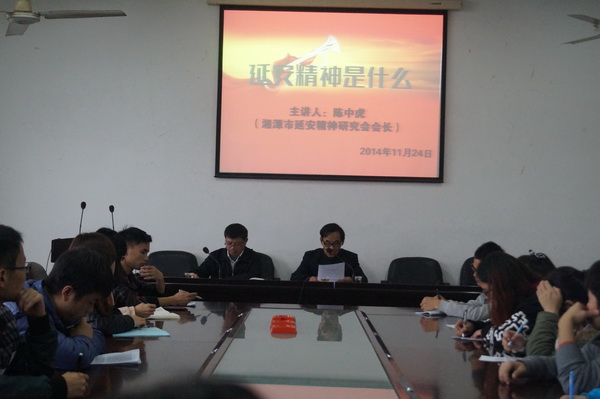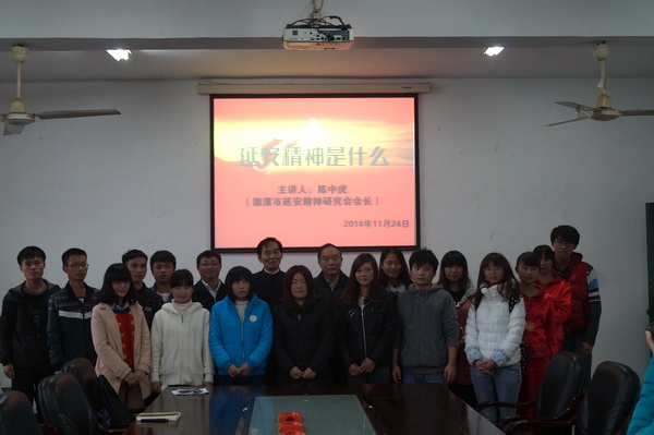 应我校延安精神研究会的邀请,湘潭市延安精神研究会陈中虎会长于11月24日下午在十教506会议室作了“延安精神是什么”的报告,报告会由bevictor伟德延安精神研究会副会长吴克明教授主持。我校延安精神研究会全体学生会员、毛泽东邓小平理论学习研究会代表、思想政治教育专业本科生代表参加了报告会。同时出席宣讲的还有湘潭市延安精神研究会陈德阴秘书长。