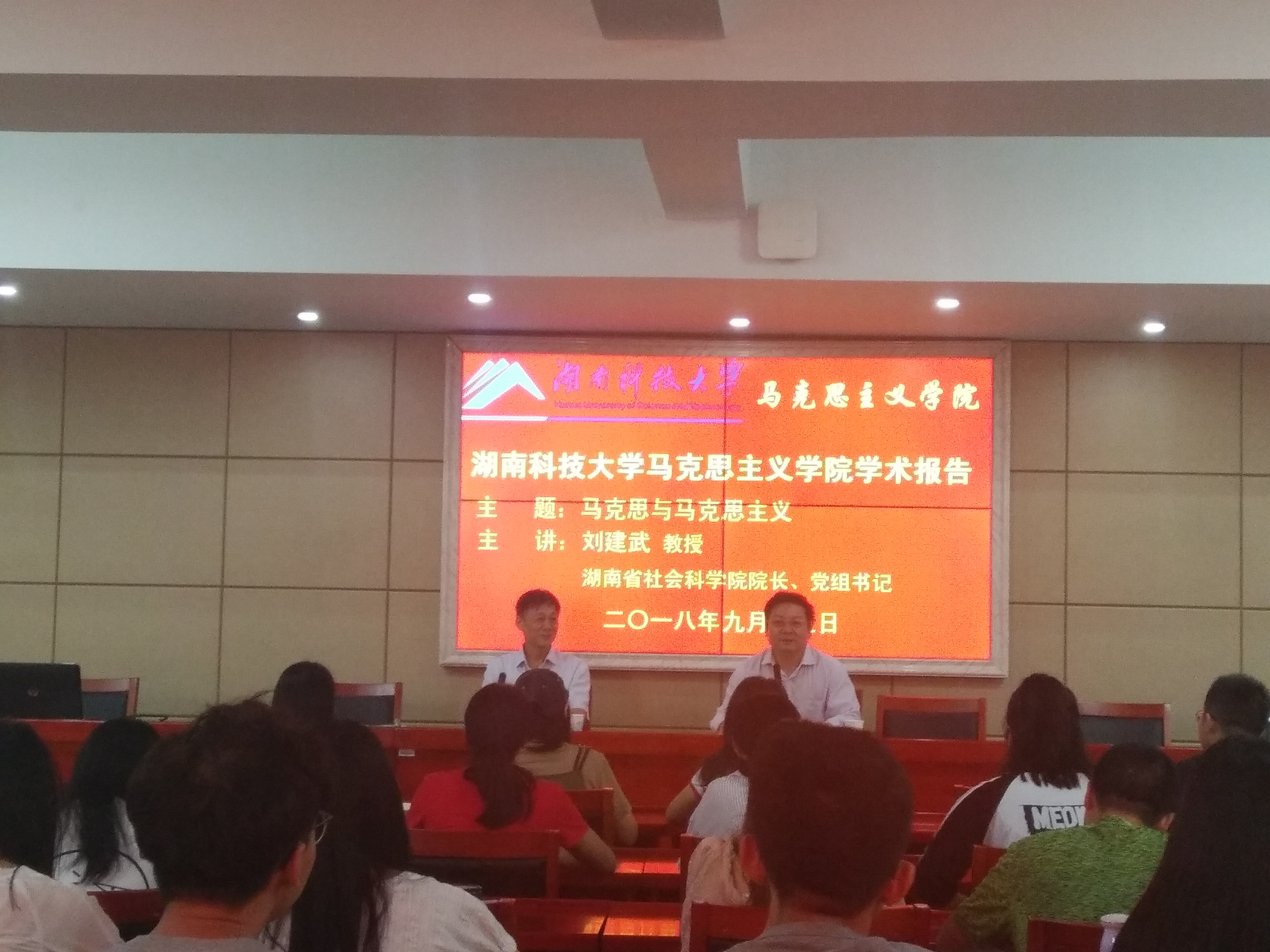 2018年9月15日上午,湖南省社会科学学院院长刘建武教授受邀来bevictor伟德进行主题为“马克思与马克思主义”的讲座。bevictor伟德全体研究生聆听讲座。学院院长吴怀友主持此次讲座。